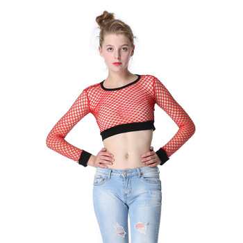 Maglia a manica lunga di grandi dimensioni a rete crop top girocollo